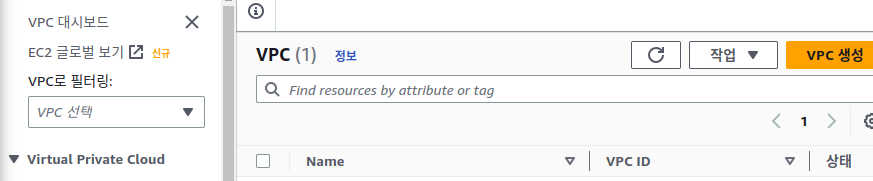1. 서비스 >> 네트워킹 및 콘텐츠 전송 >> VPC로 이동