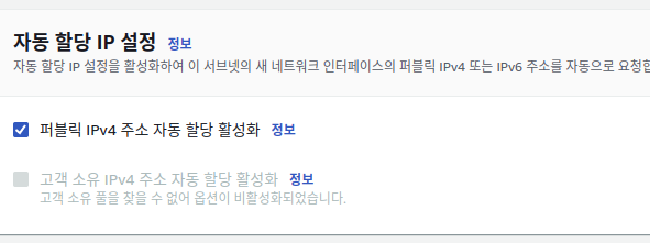 프라이빗은 퍼블릭 ip자동할당 비활성화