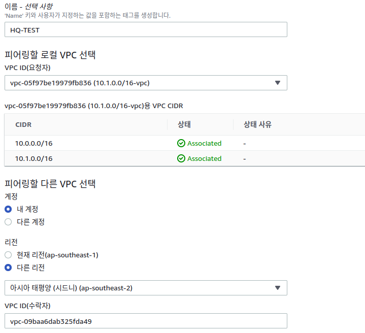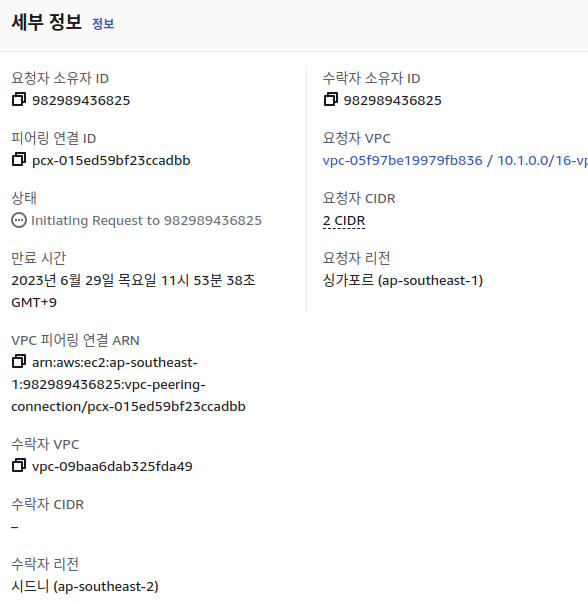 즉, 상대 리전에 대한 vpc id를 알아야됨