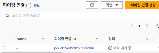 이제 시드니 리전으로 넘어와 피어링 연결 클릭