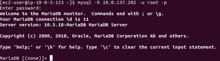 mysql -h 10.0.137.202 -u root -p >>> db서버의 ip를 통해 원격접속