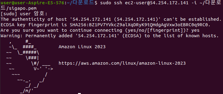 inst-test1에 ssh연결하자(싱가포르 퍼블릭)