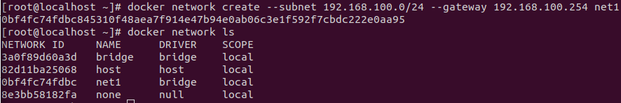 docker network create --subnet 192.168.100.0/24 --gateway 192.168.100.254 net1