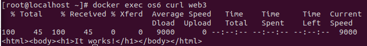 docker exec os6 curl web3 >>> os6 컨테이너에 접근하여 curl 명령으로 확인한다.