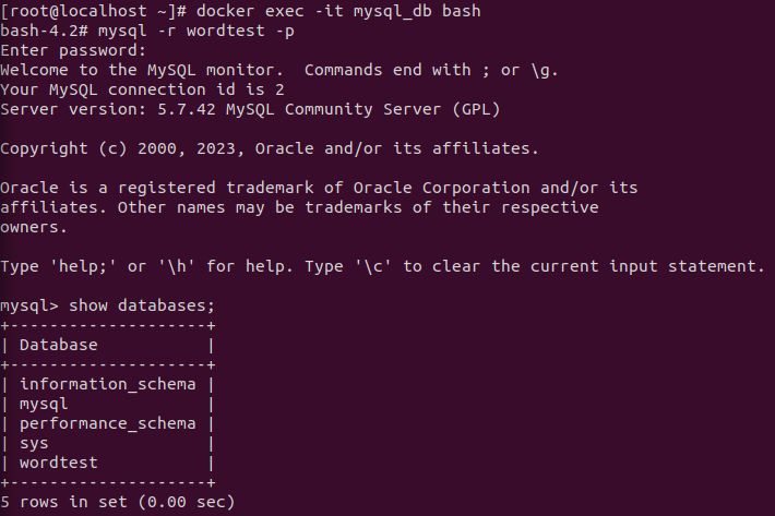 docker run -d --name mysql -v vol3:/var/lib/mysql -e MYSQL_ROOT_PASSWORD=wordpress -e MYSQL_DATABASE=wordpress -e MYSQL_USER=wordpress -e MYSQL_PASSWORD=wordpress mysql:5.7