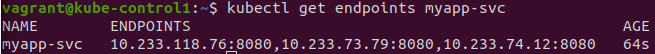 kubectl get endpoints myapp-svc