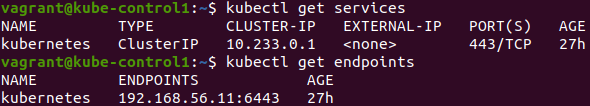 kubectl get services 명령으로 확인가능