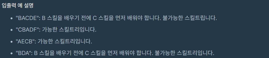 코딩테스트 연습 - 스킬트리 | 프로그래머스 스쿨 (programmers.co.kr)