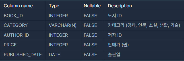 BOOK 테이블 : 판매중인 도서 정보