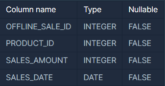 OFFLINE_SALE 테이블 : 오프라인 상품 판매 정보