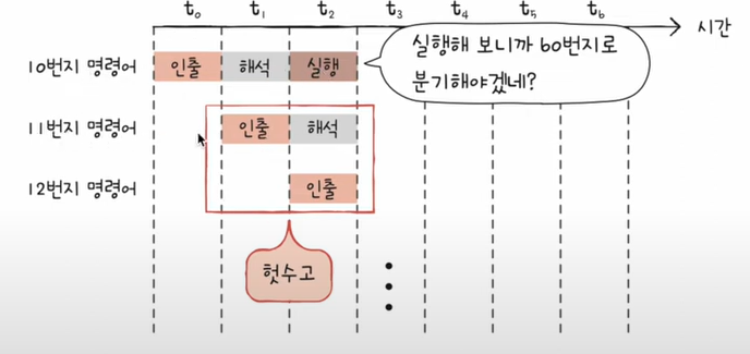 - 해결 아이디어 : 분기 예측 → CPU가 미리 분기 결과를 예측