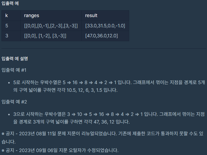 코딩테스트 연습 - 우박수열 정적분 | 프로그래머스 스쿨 (programmers.co.kr)