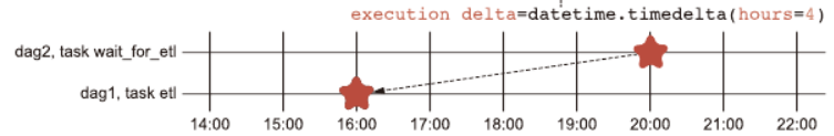 ExternalTaskSensor 오퍼레이터는 스케줄 인터벌이 완벽히 동일한 task 상태를 폴링하는데 스케줄 인터벌이 다른경우 의도적으로 ExternalTaskSensor 오퍼레이터 execution_delta 인자를 통해 스케줄 인터벌을 맞춰줄수 있다!!