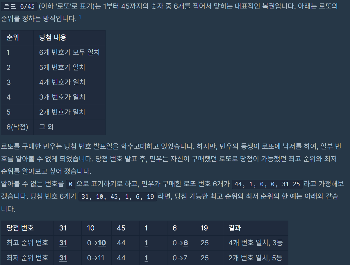def solution(lottos, win_nums):