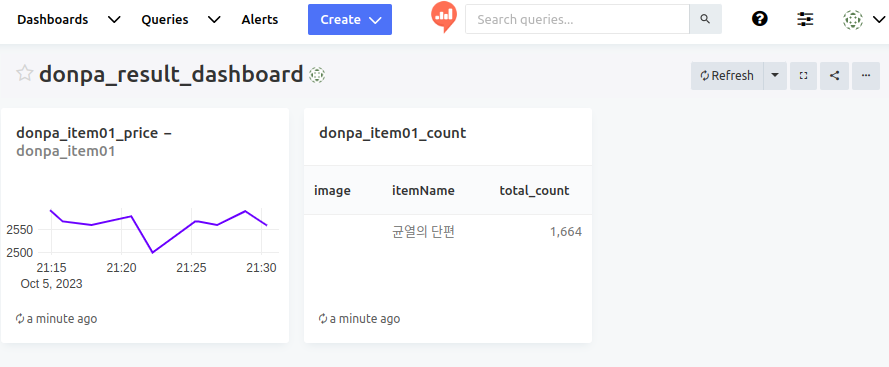 1. 대시보드 : 작성한 쿼리를 테이블, 차트 형태로 등록하여 종합적인 시각화를 구현
