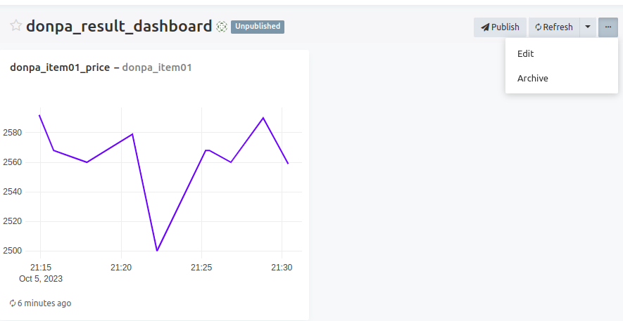최종적으로 생성쿼리를 대시보드에 등록하기 위해 Publish버튼을 클릭