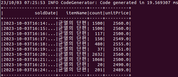 1) 스파크 토픽의 데이터를 콘솔에 띄우기
