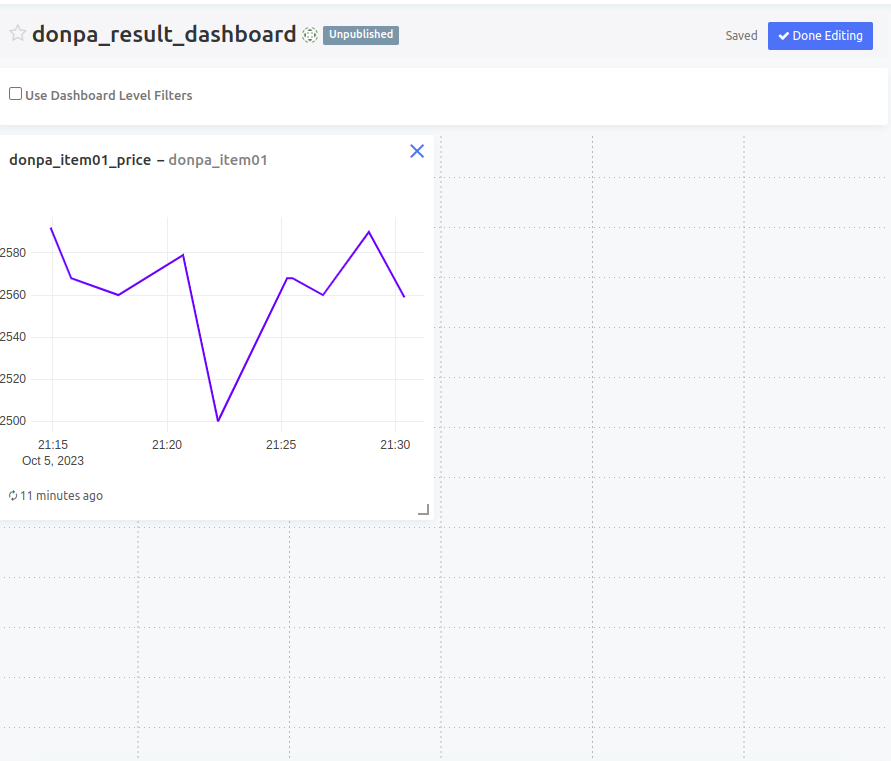 최종적으로 상단의 Publish를 클릭해 대시보드를 Publish시킴