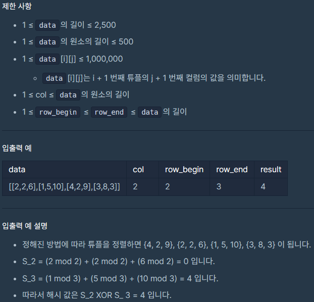 코딩테스트 연습 - 테이블 해시 함수 | 프로그래머스 스쿨 (programmers.co.kr)
