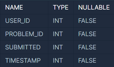 SUMBMISSIONS 테이블 : 유저 제출 정보