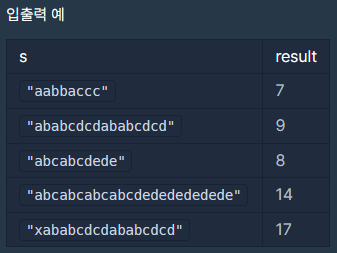 코딩테스트 연습 - 문자열 압축 | 프로그래머스 스쿨 (programmers.co.kr)