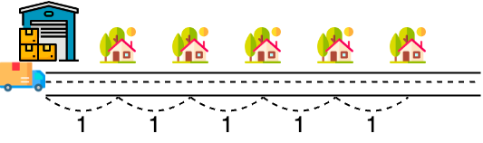 배달할 택배들은 모두 재활용 택배 상자에 담겨서 물류창고에 보관되어 있고, i번째 집은 물류창고에서 거리 i만큼 떨어져 있습니다. 또한 i번째 집은 j번째 집과 거리 j - i만큼 떨어져 있습니다. (1 ≤ i ≤ j ≤ n)