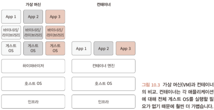 - 배포의 문제 (운영체제 차이, 종속성, 라이브러리, 하드웨어 등 ) 다양한 요소를 고려해야함