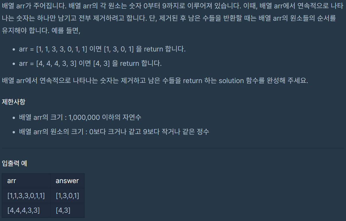 #answer 길이가 0 이거나 i와 answer마지막 값이 같지 않으면 append