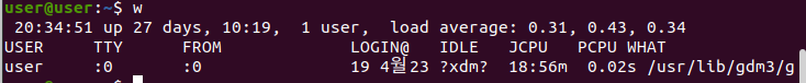 3. w : 현재 접속중인 사용자들의 정보를 나타내는 명령어