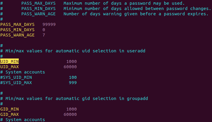 1. 파일 /etc/default/useradd : useradd 명령어로 사용자 계정을 추가시 사용되는 정보를 읽어오는 파일