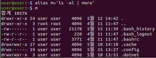 'ls -al | more' 명령어를 문자'm'으로 단축