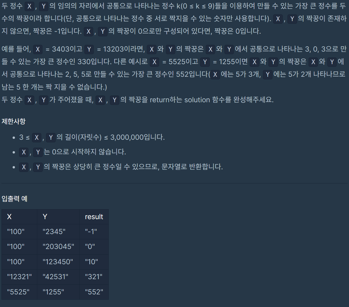 def solution(X, Y):